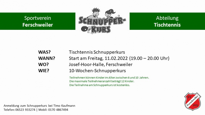 Ab dem 11.02.2022 startet in der Josef-Hoor-Halle in Ferschweiler…